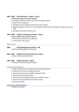 Baki Sahin is a Product Management Director at Karel Electronics in Ankara, Turkey. He has over 20 years of experience in project management, business development, and product strategy roles. He holds a Master's in Business Administration and is a certified Project Management Professional. In his current role, he determines product strategies and coordinates various departments.