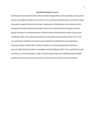 - A needs assessment found CVD costs the US hundreds of billions annually and could be reduced by over 60% through optimal prevention activities.