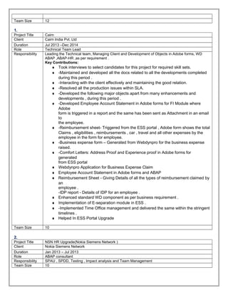 Deepak Khandelwal has over 7 years of experience as a Senior Consultant for IBM India Pvt. Ltd. He has extensive experience in SAP technologies including ABAP, WebDynpro ABAP, Adobe forms, and SAP HCM. Some of his project experiences include developing forms and processes for Henkel, Cairn India, Nokia Siemens Network, and Novartis. He is proficient in Java and has led teams of up to 20 people.
