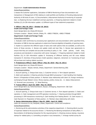 - His most recent role was as a Senior Officer in Foreign Trade at Dutch Bangla Bank Ltd where he prepared various returns and statements for submission to Bangladesh Bank.