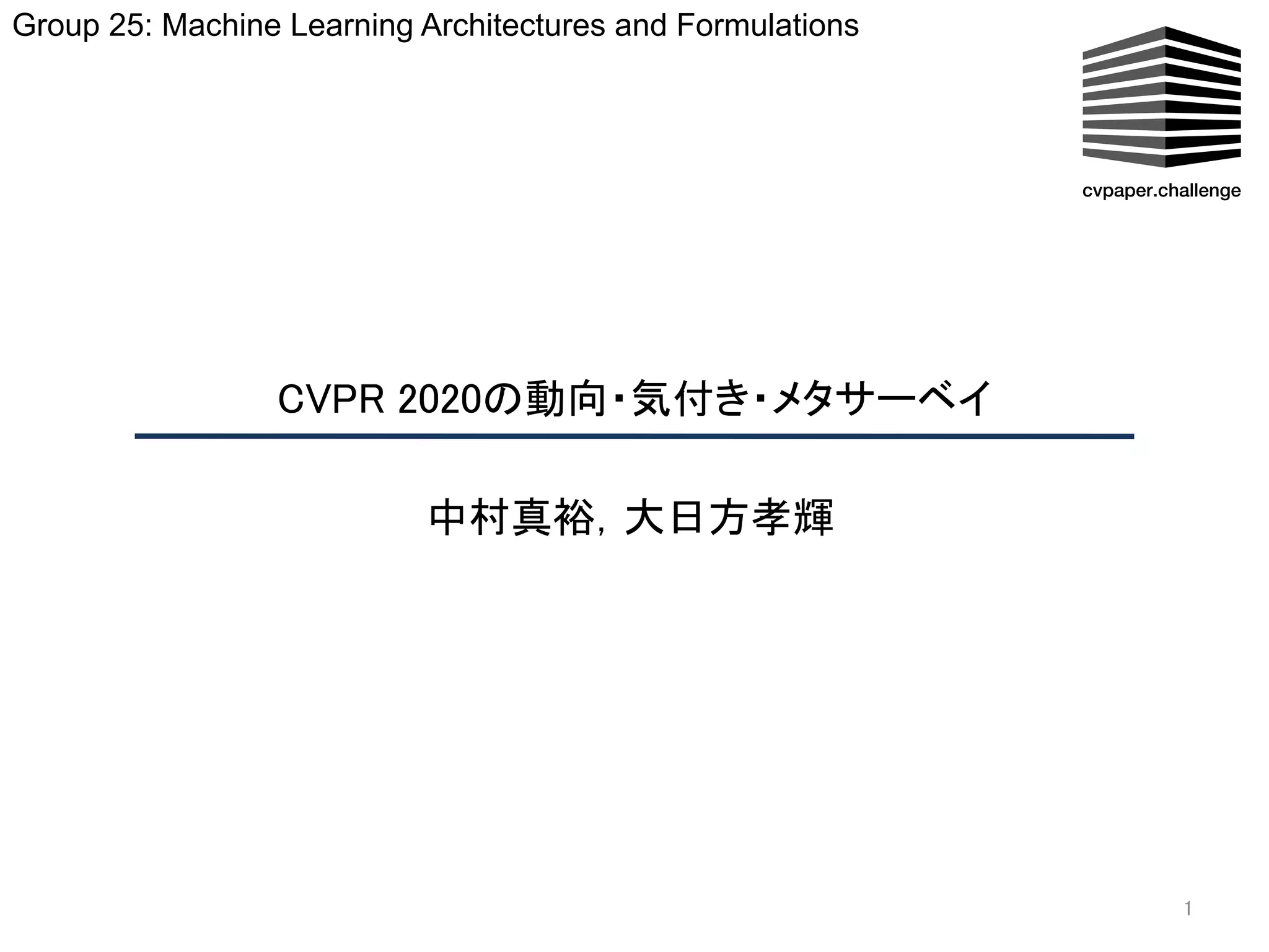 「CVPR 2020 網羅的サーベイ」により作成された Machine Learning Architectures and Formulations エリアのメタサーベイ資料です。