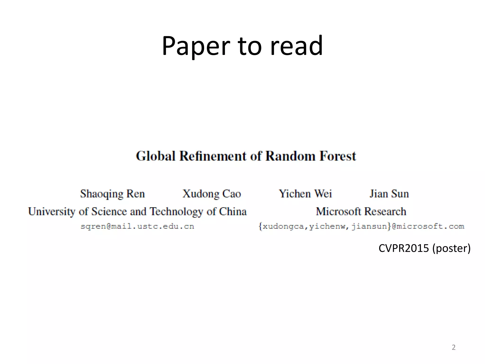 - A method is presented for refining a pre-trained random forest by optimizing the leaf weights while keeping the tree structures fixed.