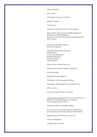 Petronella Van der Merwe is a 51-year old South African woman with over 30 years of experience in administration, customer service, and management roles. She has worked for the South African Police Service, hotels, casinos, political parties, and game lodges. Her most recent roles include serving as the Venue Manager for Uurpan Safari Lodge and the Lodge Manager for Almar Exclusive Game Ranch. She has strong skills in communication, organization, problem-solving, and customer service.