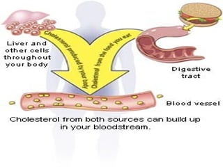 This document describes different types of antihyperlipidemic drugs used to treat various types of hyperlipidemias. It discusses the mechanisms and side effects of niacin, fibrates like gemfibrozil and clofibrate, bile acid sequestrants like cholestyramine, statins which inhibit HMG CoA reductase, and ezetimibe which inhibits cholesterol absorption. The types of hyperlipidemia and appropriate drug therapies are outlined.