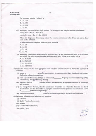 Question paper for Management Accounting - Enterprise performance Management for December 2012 exam attempt.