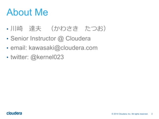 Cloudera World Tokyo 2014 のライトニングセッションで使用したスライドです。 Cloudera World Tokyo 2014: http://www.cloudera.co.jp/jpevents/cwt2014