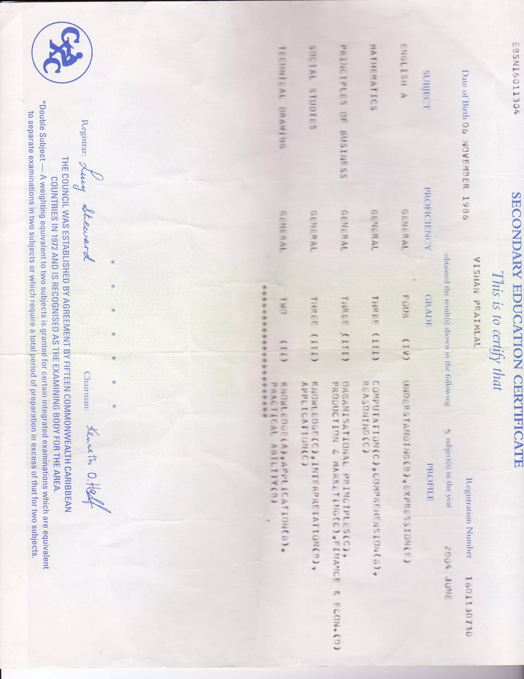 CXC Certifacate - 1995