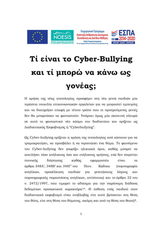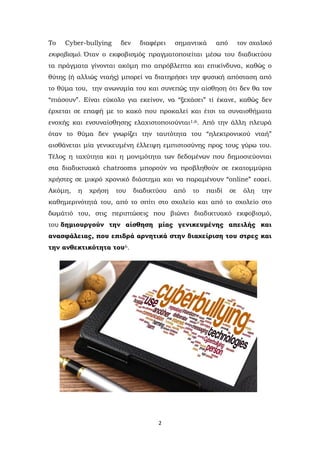 εκφοβισμό. Όταν ο εκφοβισμός πραγματοποιείται μέσω του διαδικτύου