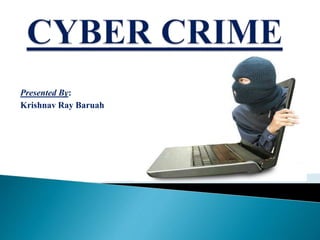 The document discusses the rise of cyber crime in India, highlighting its history and defining characteristics, such as unlawful acts involving computers. It categorizes cyber crimes into three main areas: against persons, property, and government, and also details various forms of cyber criminal activities. The document emphasizes the importance of preventive measures like strong passwords and secure networks to combat the increasing threat of cyber crime.