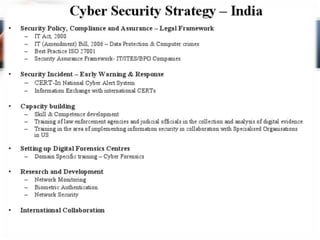 Cyber crime involves using computers and the internet to steal identities or data. The document discusses the history and types of cyber crimes such as hacking, denial of service attacks, and software piracy. It provides statistics on common cyber attacks and safety tips for preventing cyber crimes like using antivirus software and firewalls. The conclusion reflects on how technology can be destructive if not used responsibly.