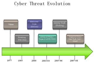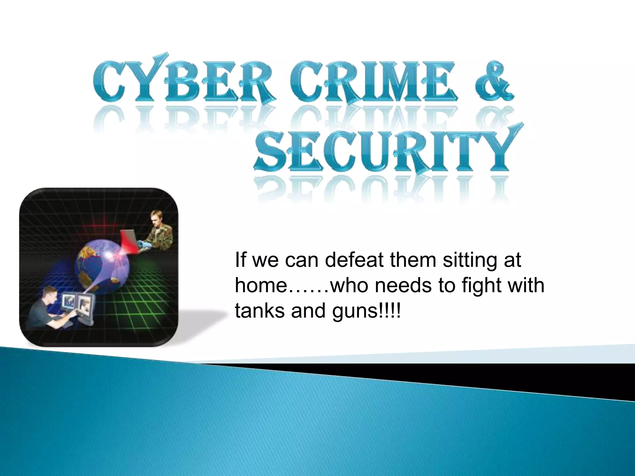 The document discusses cyber crime, its types, and the importance of cyber security in protecting personal information and computers from attacks. It highlights various cyber threats such as hacking, malware, and phishing, alongside practical suggestions for enhancing cyber safety, including software updates, anti-virus programs, and secure password practices. It emphasizes continuous vigilance in maintaining computer security as threats evolve.