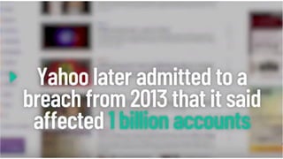 This document discusses cyber forensics and investigating large scale data breaches. It begins by defining cyber forensics as an electronic discovery technique used to determine and reveal technical criminal evidence, often involving extracting electronic data for legal purposes. It then discusses challenges in investigating corporate networks due to different operating systems, file systems, and administrative access used. When investigating large data breaches, security exploits and employee devices are common entry points, while pace of growth and lack of evidence erasure complicate progress. The Yahoo breach example turned tides by providing data to investigators that aided geopolitical understanding. Immediate actions include response and isolation, while tools like COFEE, SIFT, and ProDiscover aid forensic analysis at different levels.