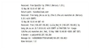 The document outlines the various types of computer forensics technologies utilized in military, law enforcement, and business contexts, emphasizing their role in recovering data and analyzing cyber threats. Key aspects include the objectives of cyber forensics, types of technologies used, and specialized techniques such as live forensics and data recovery. It also discusses encryption methods, vulnerabilities, and the importance of securing data against unauthorized access, as well as cybersecurity measures for wireless networks.