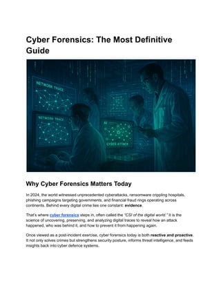 In 2024, the world witnessed unprecedented cyberattacks, ransomware crippling hospitals, phishing campaigns targeting governments, and financial fraud rings operating across continents. Behind every digital crime lies one constant: evidence.