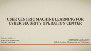 The document outlines a user-centric machine learning framework for enhancing the functionality of Security Operations Centers (SOCs) in cyber security. It highlights the importance of a proactive approach in detecting potential threats by utilizing existing security information and event management systems. The proposed system aims to improve user awareness and risk reduction by analyzing security data and optimizing detection methodologies.