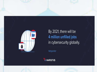 Cyber security is important to protect electronic data and online services from criminal or unauthorized use. There are various security problems in the cyber field like cyber attacks, viruses, hackers, malware, and trojan horses. Some major cyber attacks in India include the Cosmos Bank attack, Aadhaar software hack, ATM system hack, and personal data breaches at companies like JustDial. To prevent cyber attacks, organizations should educate employees, keep software updated, perform security testing, and limit employee access to sensitive data. Careers in cyber security include roles like cyber security engineers, penetration testers, and security analysts.