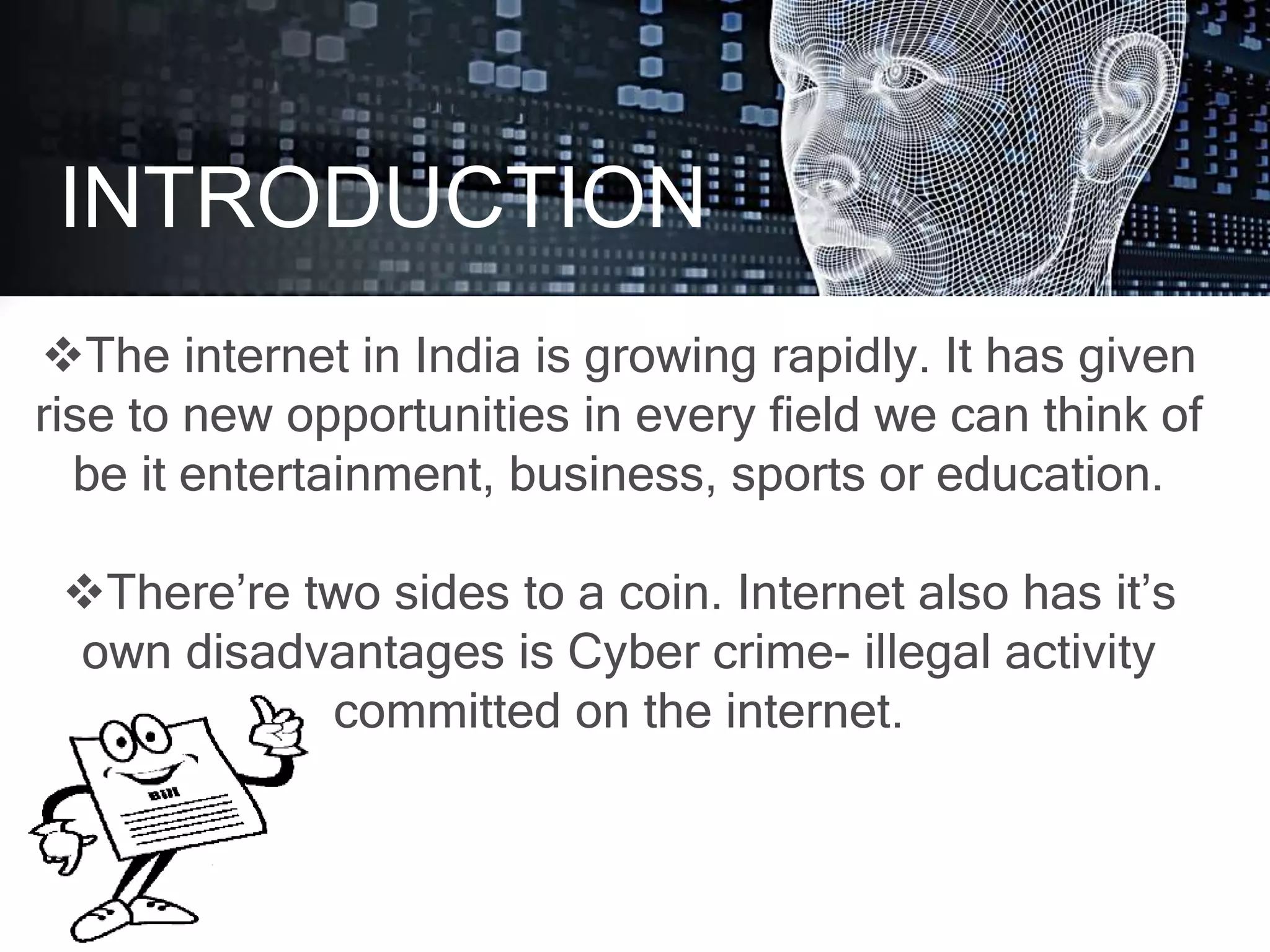 Cyber crime and security refers to illegal activities committed using computers and the internet. It can include hacking, denial of service attacks, virus dissemination, and software piracy. The document discusses the history and evolution of cyber threats and categorizes common types of cyber crimes. It also provides statistics on the most common types of cyber attacks and offers safety tips, emphasizing the importance of cyber security to defend against critical attacks and browse safely.