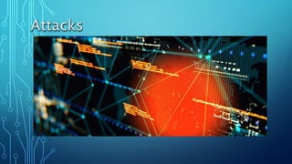 4) Major cyber attack types banks face include social engineering, malware, phishing, man-in-the-middle attacks, denial-of-service attacks, and password attacks.