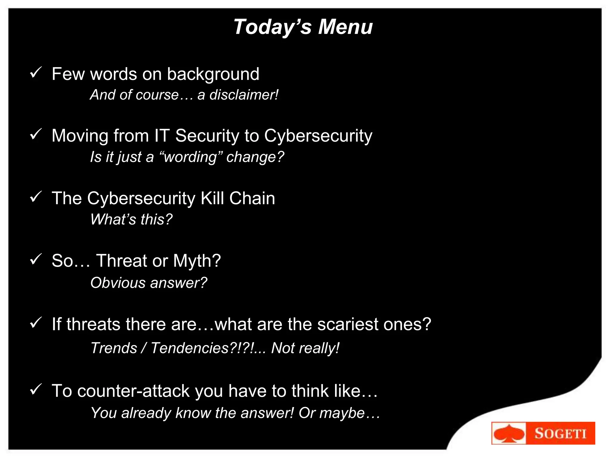 IT security focused on protecting systems, while cybersecurity is a paradigm shift that recognizes threats can come from anywhere on the internet. The cybersecurity kill chain describes the steps hackers use, from initial reconnaissance to maintaining access. While some see cyber threats as a myth, over 110 million Americans had personal data exposed in the past year, and advanced persistent threats from nation-states pose serious risks. To counter attacks, organizations should develop new approaches through education and creativity, rather than relying on fear, and aim to make security practices inherently more secure.