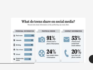 Cyberstalking involves using electronic means like the internet or other technology to stalk or harass individuals or groups. It can take many forms, including harassment, economic control, isolating victims from friends/family, and instilling fear through scare tactics. While anyone can be a victim, women are more likely targets. Cyberstalkers may be vindictive, seeking only to annoy, composed and attempting relationships, or collective groups. They find victims through search engines, forums, communities and monitor victims' online activities to gather information. Effects on victims include psychological trauma, anxiety, and fear for safety. Pakistan's cultural norms may discourage victims from reporting harassment. The new cyber law punishes cyberstalking with