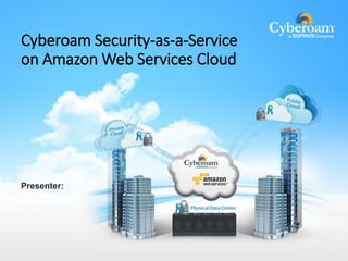 The document outlines Cyberoam's Security-as-a-Service offering on Amazon Web Services (AWS), which provides enhanced security for AWS-hosted infrastructure including web applications and servers. It details features such as Web Application Firewall (WAF), VPN connectivity, traffic visibility, and comprehensive monitoring tools. Cyberoam's service aims to protect users from online threats while providing flexible licensing options, including pay-as-you-go and bring-your-own-license models.