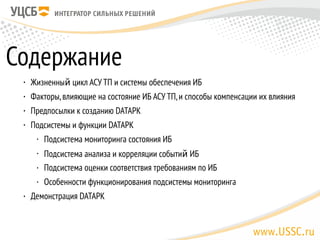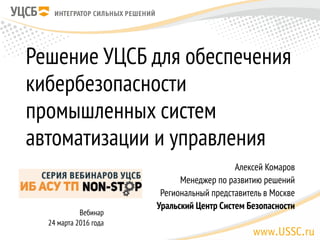 Вебинар, проведенный Алексеем Комаровым, посвящен обеспечению кибербезопасности промышленных систем автоматизации и управления, с акцентом на жизненный цикл автоматизированных систем управления и системы информационной безопасности. Презентован программно-аппаратный комплекс datapk, который включает подсистемы мониторинга, анализа событий и оценки соответствия требованиям по информационной безопасности. Обсуждаются факторы, влияющие на состояние информационной безопасности, и методы их компенсации, подчеркивая важность непрерывной проверки и модернизации систем.