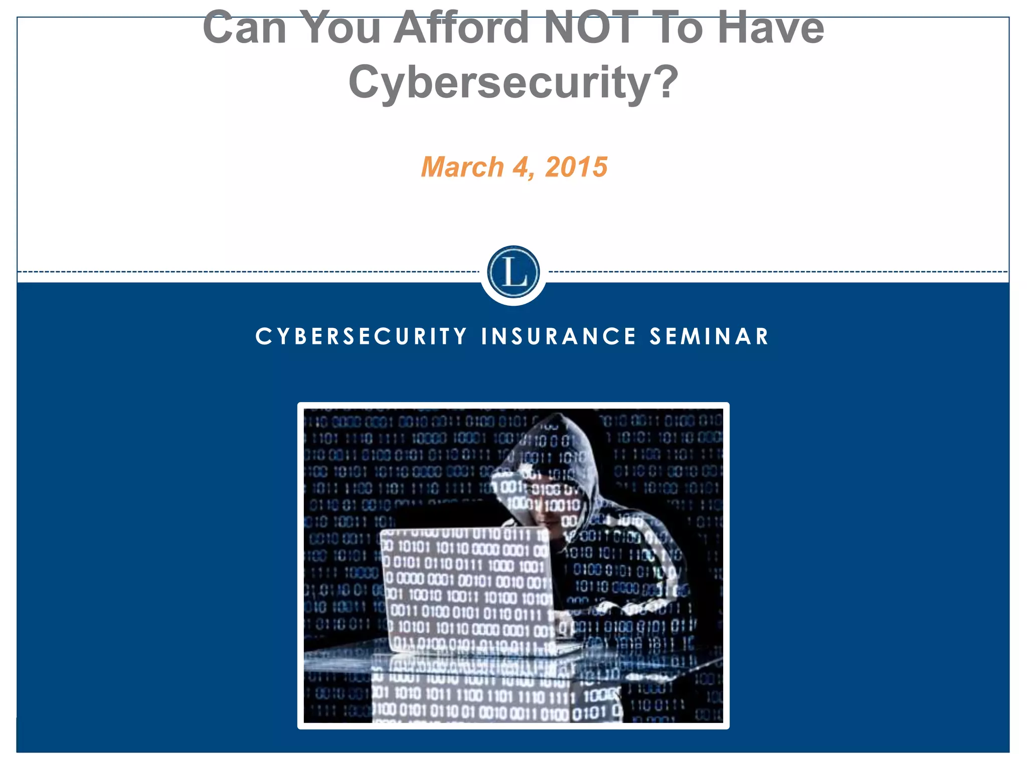 This document summarizes a seminar on cybersecurity insurance. It discusses the presenters and provides examples of data breach headlines. It then explains the threats to data, including internal and external threats. The document outlines the immediate expenses of a data breach such as notification, call centers, credit monitoring, legal expenses, and forensics. Finally, it discusses the typical costs of a data breach, which can range from hundreds of thousands to millions of dollars depending on the size and type of breach.