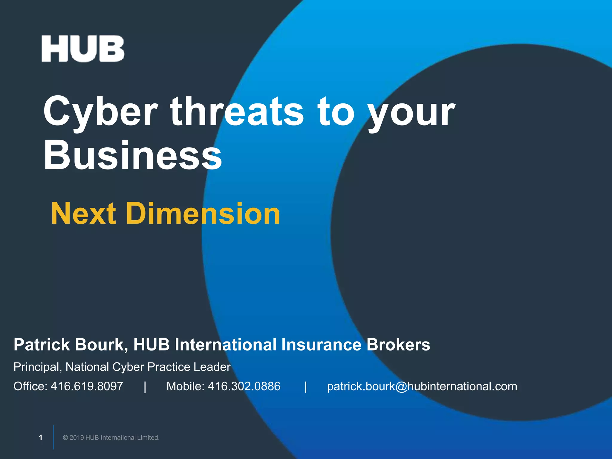 The document discusses the growing prevalence and impact of cyber risks on businesses, emphasizing the need for appropriate cyber liability insurance. It highlights various claims trends, the financial burdens of breaches, and the necessity of organizations understanding their exposure and risk management responsibilities. Additionally, it outlines what underwriters look for in risk assessments and the specific components of network security and privacy liability insurance.