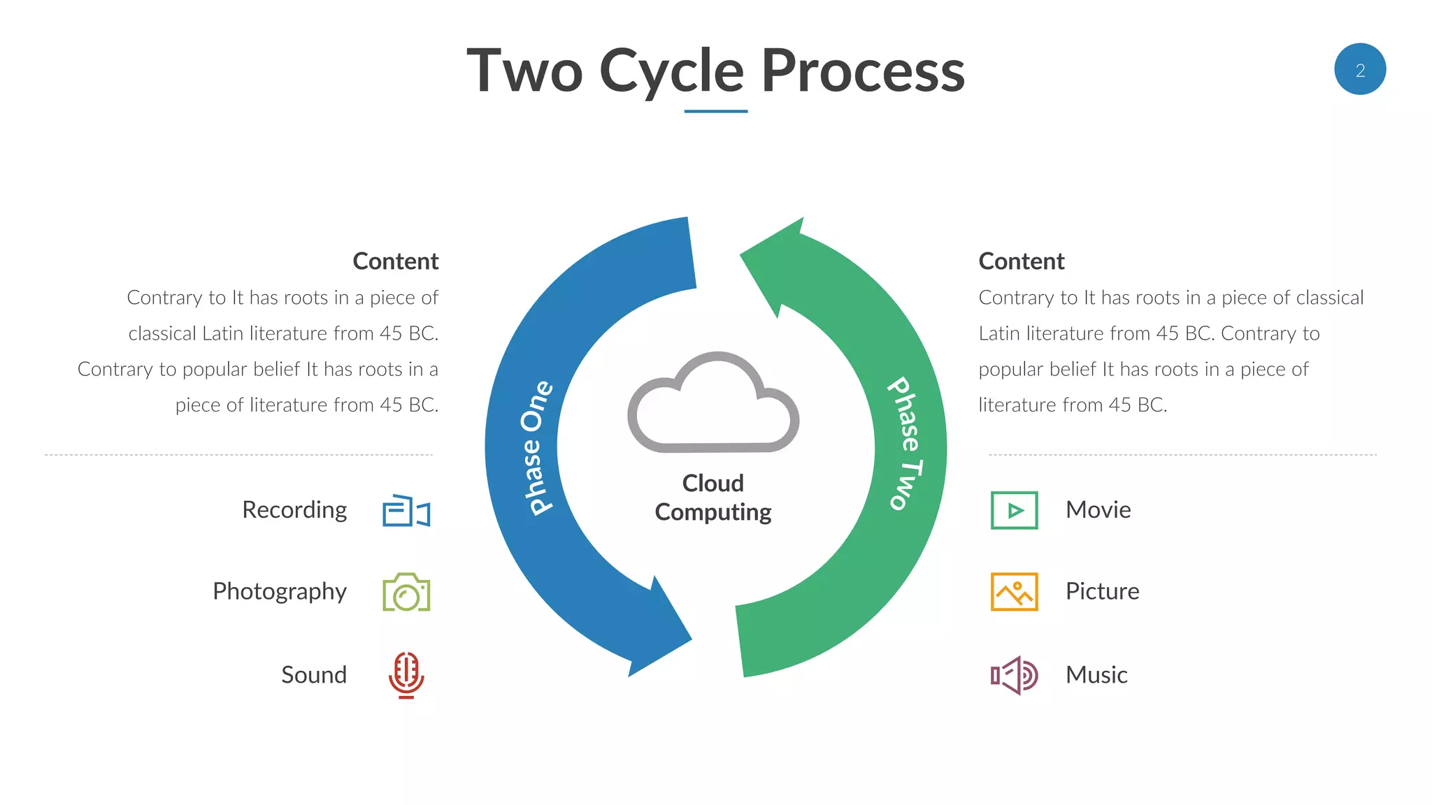 The document describes various cycle processes that involve multiple steps or phases repeated in a loop. It includes descriptions of 2-8 cycle processes as well as looping and infinity loop diagrams. The cycles generally involve inputs and outputs moving through different steps or phases with the goal of improvement, problem solving, or project development through repeated refinement.