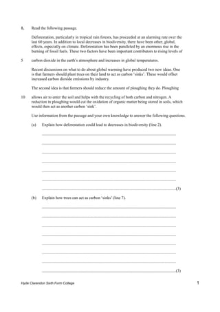 Deforestation, especially in tropical rainforests over the past 60 years, has contributed to both local decreases in biodiversity and global climate effects. Deforestation and the burning of fossil fuels have increased carbon dioxide levels in the atmosphere and global temperatures. New ideas to address global warming include planting trees on farms to offset industry emissions by acting as carbon sinks, and reducing plowing which allows soil to store more carbon.