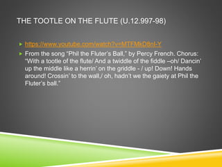 This document provides details about various places, people, songs, and historical events related to Ireland. It includes descriptions of locations like Glendalough, a valley in County Wicklow known for its monastic ruins, and the Rock of Cashel, a historic site in County Tipperary atop a steep limestone outcropping. Various songs are also summarized, such as "Come Back to Erin" by Charlotte Barnard and lines from "If the Man in the Moon was a Jew." Historical figures mentioned include the first Duke of Wellington and Leopold O'Donnell, a prime minister of Spain.