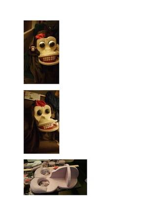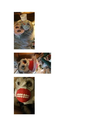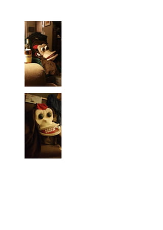 The document describes a DIY project to recreate a classic mechanical monkey toy using materials like foamular and paper mache. It details the steps involved, including crafting the face, painting, and adding skin and fur, while offering tips for construction and ventilation. The author also mentions their cosplay company, which has been making costumes since 2003 and provides contact information for inquiries.