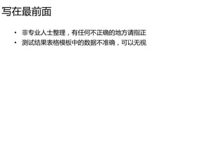本文件讨论了服务器基准测试的重要性,强调在保证服务器高性能和高可靠性下的测试方法和工具,包括性能基准测试和可靠性测试。主要关注点包括CPU、内存、磁盘的性能,并介绍了多种测试工具如sysbench和iozone。文件还提供了测试计划的详细大纲和附件下载链接,为性能评估提供了全面的指导。