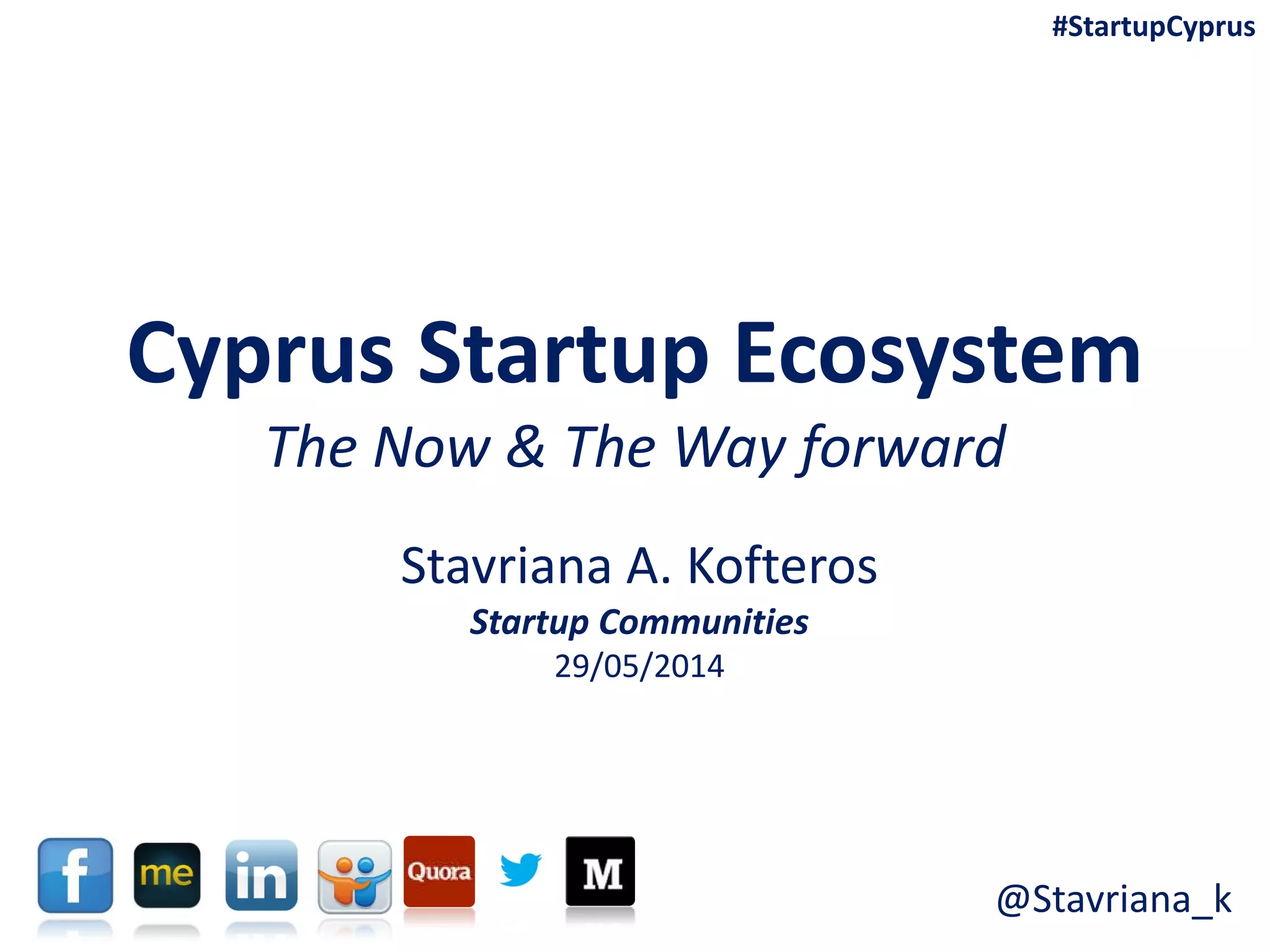 The document discusses Cyprus' startup ecosystem, noting both positives like support structures for entrepreneurs and funding programs, as well as challenges around a lack of venture capital and low R&D investment. It proposes recommendations to improve the ecosystem such as increasing academic entrepreneurship, incentivizing industry R&D spending, and adjusting policies to encourage job and business creation through entrepreneurship rather than solely focusing on third-party employment. The overall message is that Cyprus needs to shift its mindset from an "egosystem" to one that truly supports startups and fosters an entrepreneurial culture and mindset to help startups succeed.