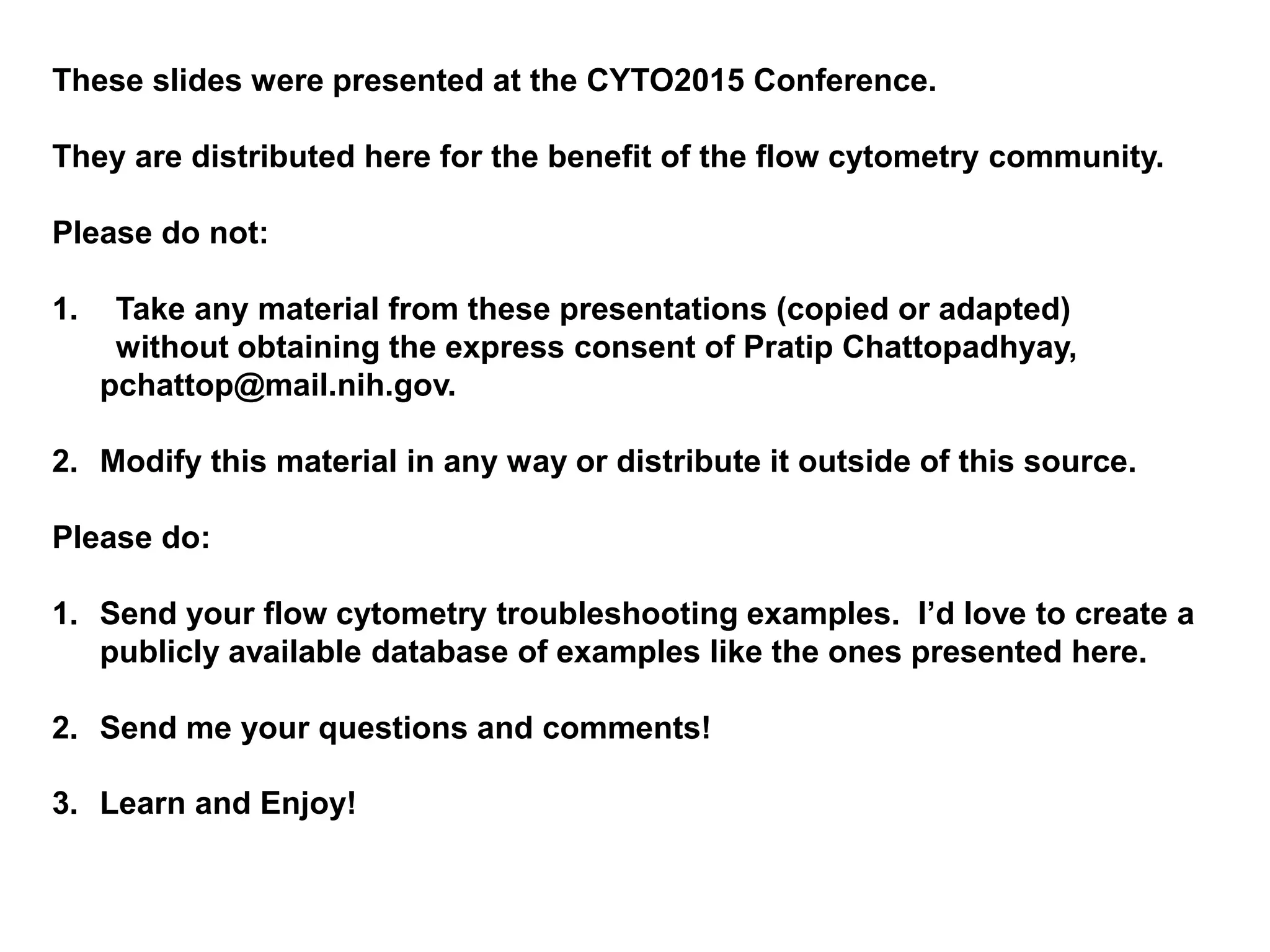 This document discusses best practices for troubleshooting and improving flow cytometry experiments, emphasizing careful experimental planning, proper instrument setup, and thorough reagent titration. It outlines guidelines for panel design, addressing issues like spectral overlap and spreading error, and highlights the importance of optimizing detector voltages. Additionally, the document encourages sharing troubleshooting examples within the flow cytometry community to enhance collective knowledge.
