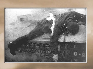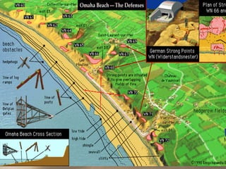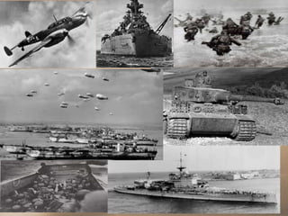 The document provides background information on D-Day and the Normandy landings during World War 2. It discusses the Allied armies that participated in the invasion including the US, UK, Canada and others. It describes Operation Overlord which was the code name for the Battle of Normandy, and details the causes of the landings, those responsible for planning and leading the operation, the number of troops and casualties involved, and the Allied strategy and defenses employed by Axis forces. The summary concludes with the results and consequences of D-Day, which marked a major turning point in the liberation of Europe from Nazi occupation.