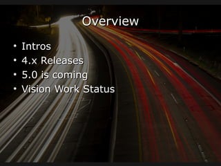 The document outlines updates and features related to DSpace, including the recent release of version 4.0 and the upcoming version 5.0, anticipated for late 2014. It highlights new functionalities such as improved search capabilities, a redesigned user interface, and planned enhancements like ORCID support. The document encourages community involvement and provides contact information for further engagement.