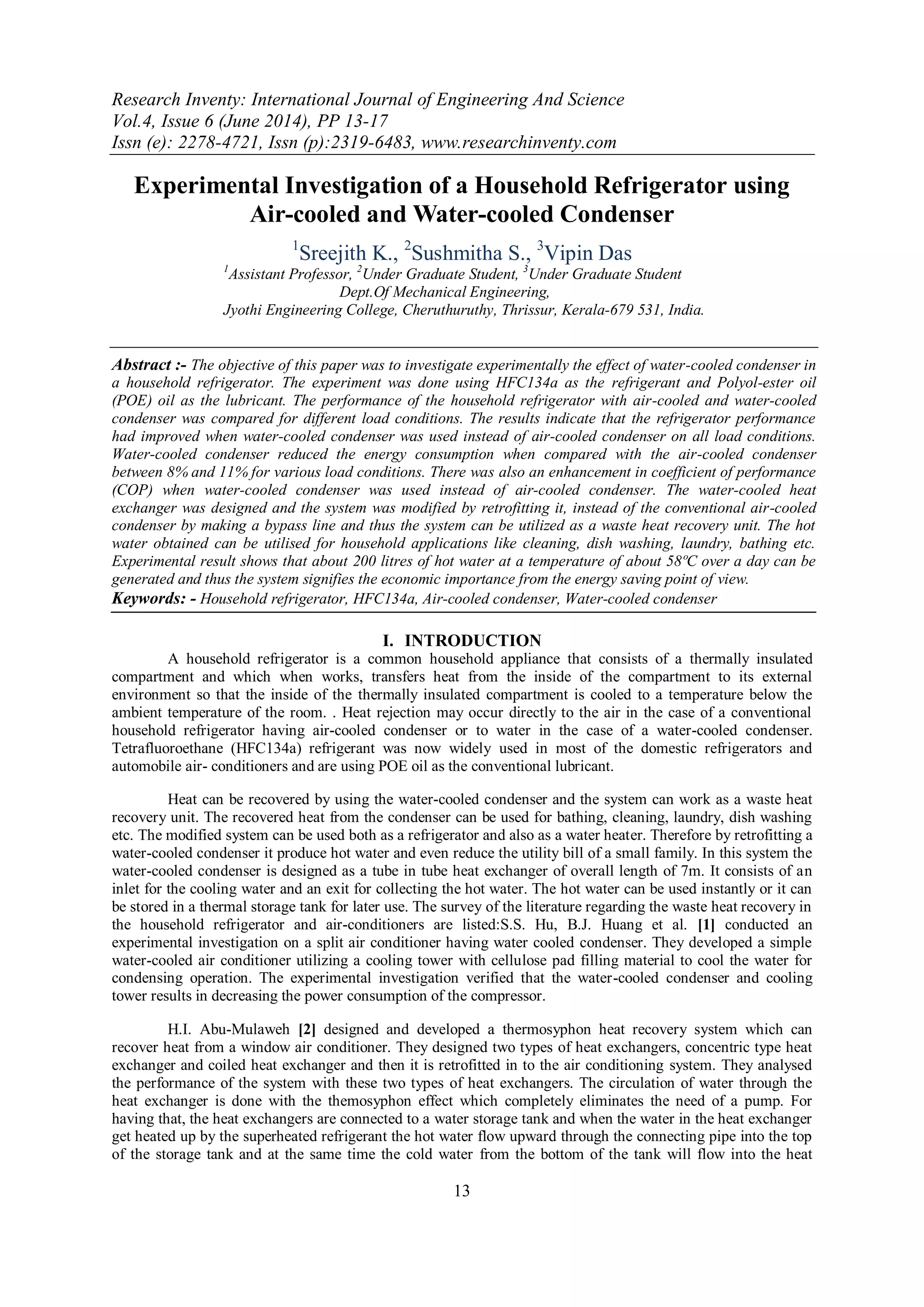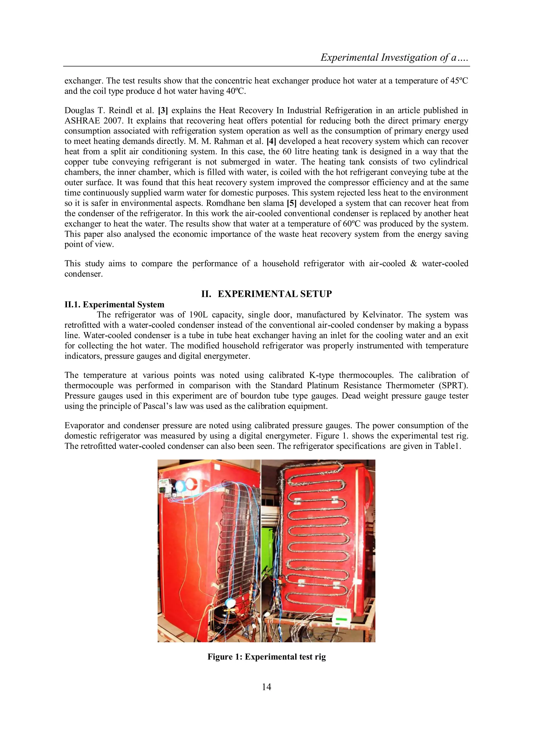 This paper experimentally investigates the performance of a household refrigerator using water-cooled and air-cooled condensers, demonstrating that the water-cooled option improves efficiency and reduces energy consumption by 8% to 11%. The study reveals that the modified refrigerator can generate approximately 200 liters of hot water daily, which can be utilized for various household applications. The findings indicate that retrofitting with a water-cooled condenser not only enhances refrigerator performance but also allows it to function as a water heater.