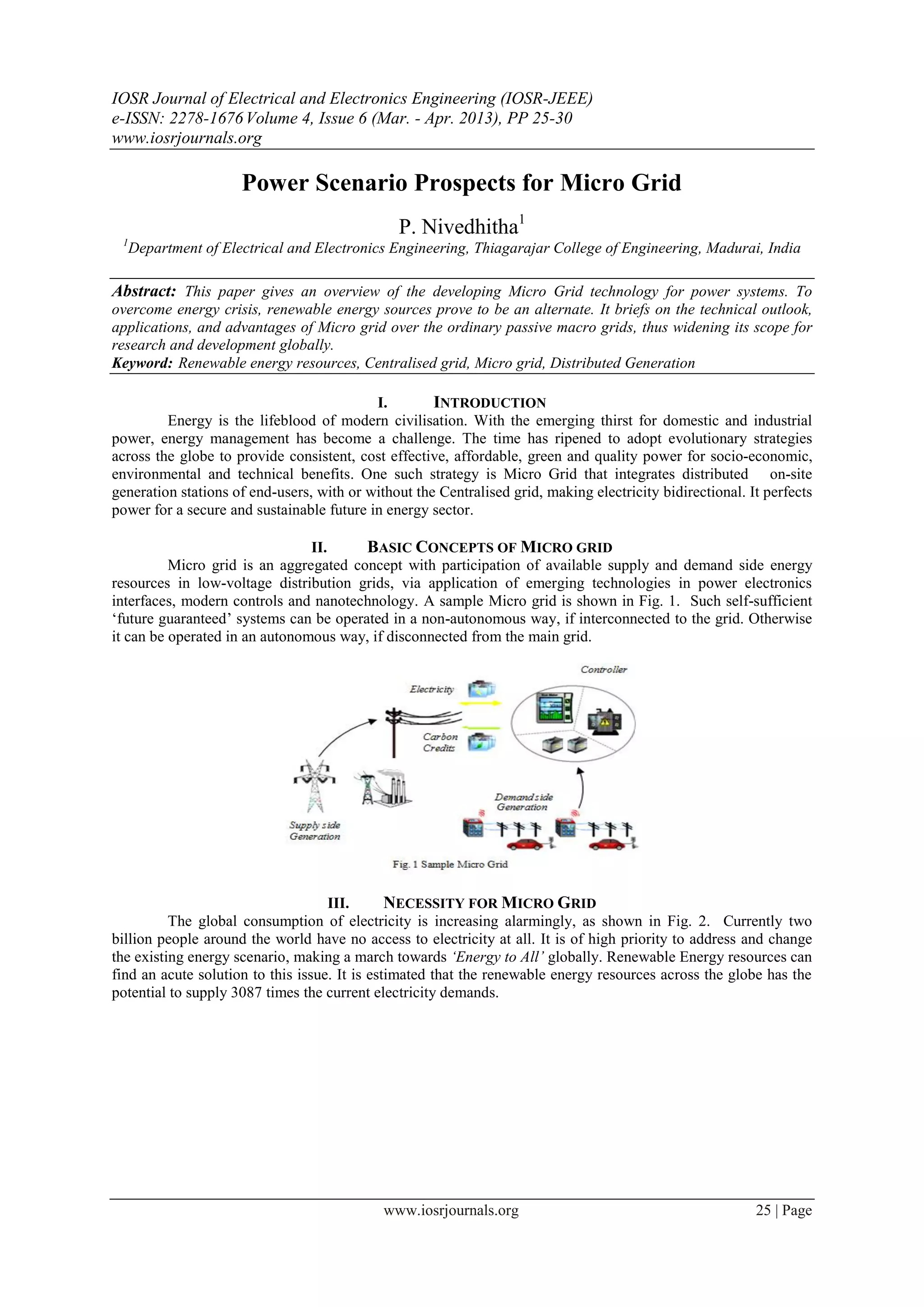 1) The document discusses microgrids which integrate distributed energy resources to provide electricity for local areas. Microgrids can operate connected to the main power grid or independently.