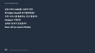 Similar to KB국민카드 - 클라우드 기반 분석 플랫폼 혁신 여정 - 발표자: 박창용 과장, 데이터전략본부, AI혁신부, KB카드│강병억, Solutions Architect, AWS│이종혁, Analytics SA, WWSO, AWS ::: AWS Data Roadshow 2023