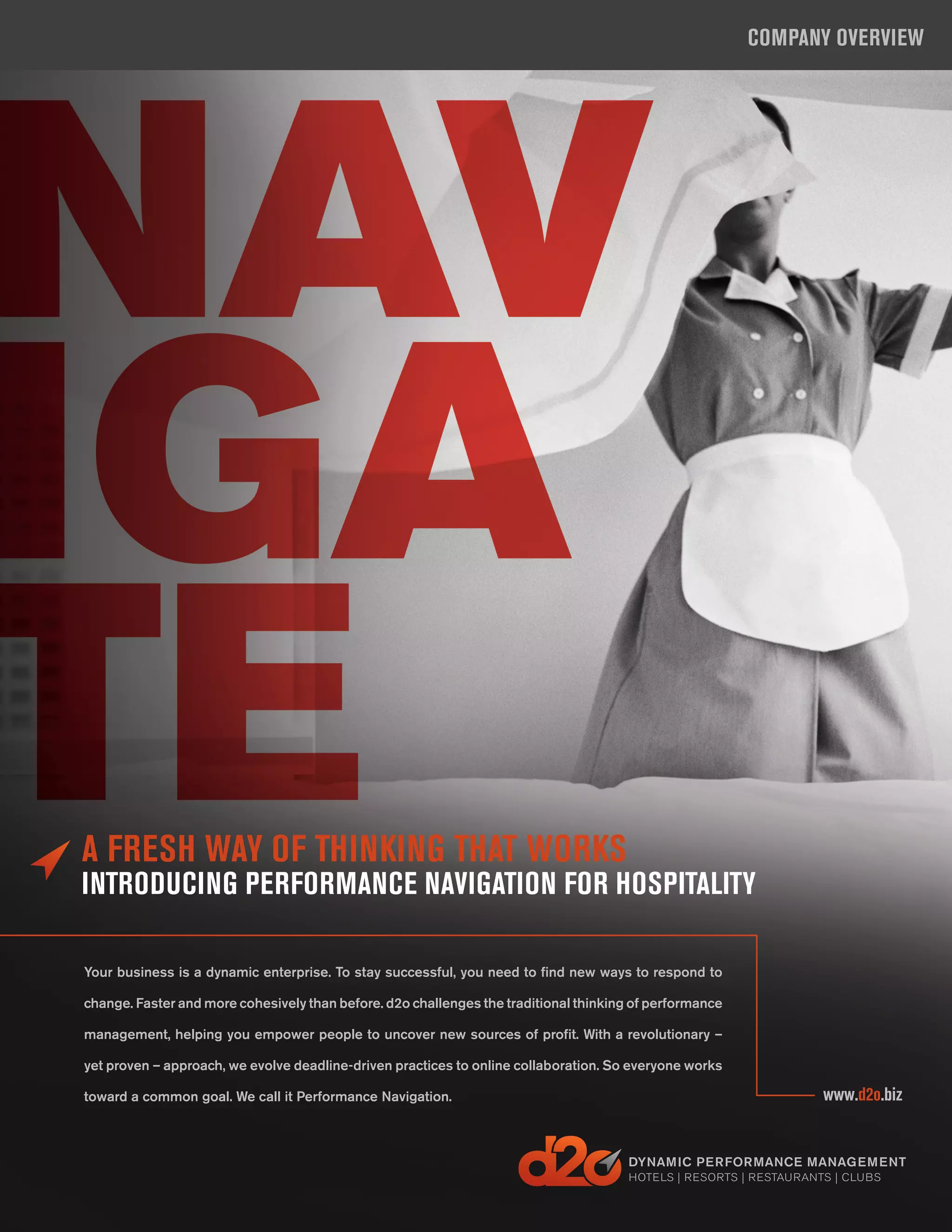 d2o is a leading provider of real-time performance management solutions for the hospitality industry. Their Performance Management Intelligence suite helps hotels discover untapped profits by providing a collaborative view of revenues, labor costs, and food and beverage costs. The suite gives departments visibility and accountability for managing costs to achieve goals. d2o has over 4,000 customers in 400 hotel groups worldwide and claims up to ten times return on investment, backing their work with a money-back guarantee.