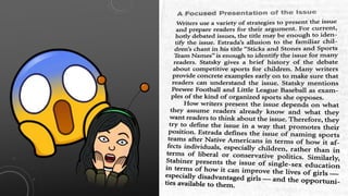 This document provides an agenda and instructions for a creative writing class focused on the Harry Potter series. It assigns students to fictional Hogwarts houses and explains how house points will be earned. It discusses analyzing an argumentative essay from the assigned reading and introduces the prompt for Essay 1, which asks students to argue how a marginalized character from Harry Potter and the Chamber of Secrets responds to their marginalization. The document outlines the introduction and thesis statement, emphasizing a focused presentation of the issue, a clear position stated in the thesis, and forecasting of reasons. Homework includes continuing to read Harry Potter and the Prisoner of Azkaban, a sample student essay, and two articles on marginalization.