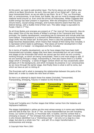 This document discusses Ken Wilber's integral theory and Clare Graves' spiral dynamics theory. It draws connections between Graves' levels of human existence (which he referred to as Tiers) and Wilber's three bodies or energy realms (gross, subtle, causal). It proposes that Graves' first six levels make up the first Tier and correspond to the gross body, levels 7-8 make up the second Tier and correspond to the subtle body, and a potential third Tier would correspond to the causal body. It then examines how these different levels, bodies, and energies relate and develop through states of being included, transcended, transcending, emerging, and future.