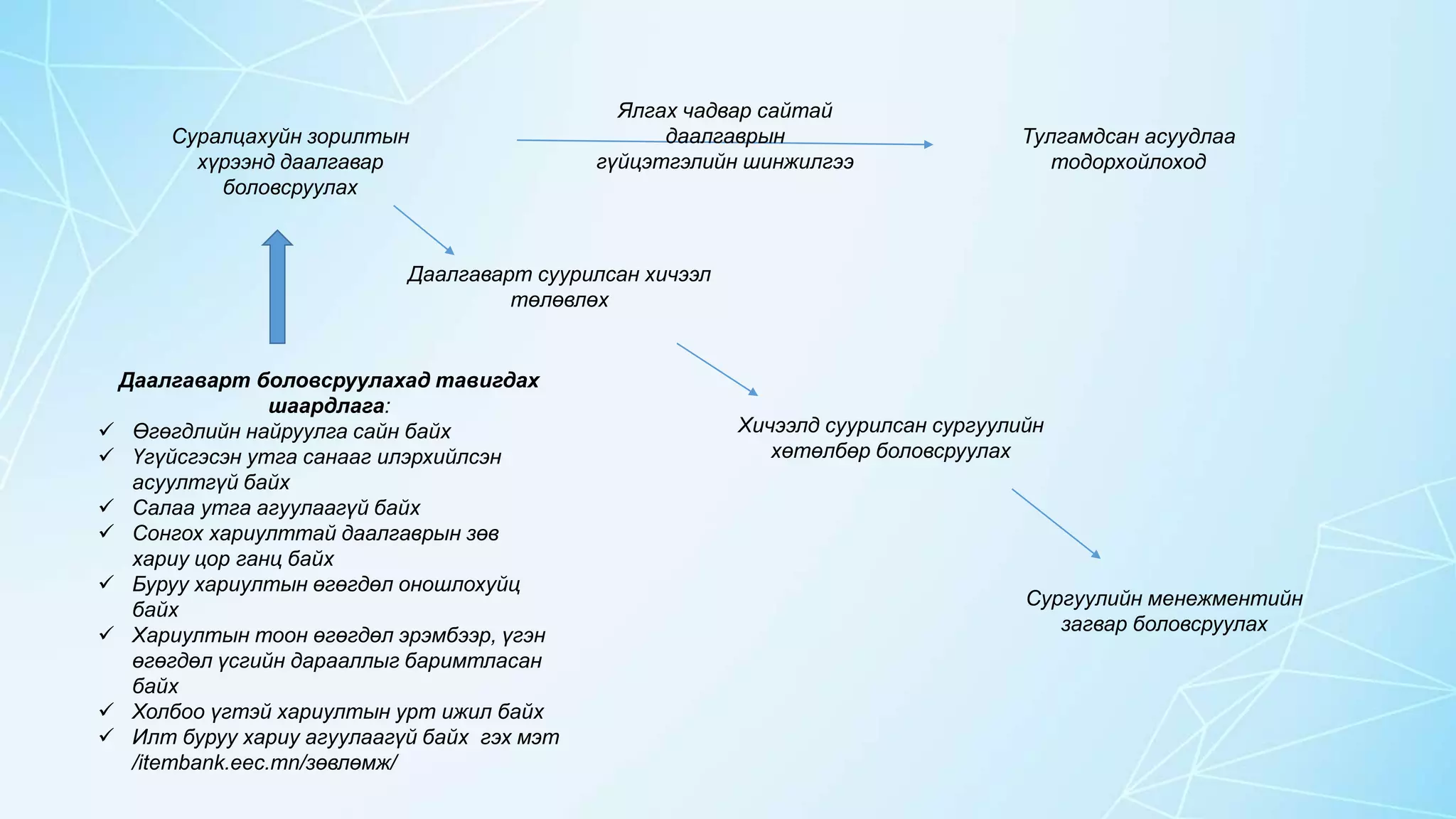 Суралцахуйн зорилтын хүрээнд даалгавар боловсруулах Даалгаварт