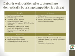 Dabur began in 1884 when Dr. S.K Burman started producing natural cures for diseases like cholera, malaria, and plague in villages in Bengal. His effective medicines spread by word of mouth, and he became known as the trusted "Daktar". The company Dabur gets its name from the Devanagri version of "Daktar Burman". Today Dabur is a leading Indian consumer goods company with interests in hair care, oral care, health care, and other areas. It has grown from its origins as an Ayurvedic medicines company in Calcutta to become a major consumer products manufacturer in India.
