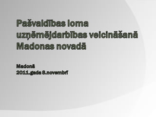 Pašvaldības loma uzņēmējdarbībasattīstībā Madonas novada attīstības programma 2013.-2020.gadam Sakārtota infrastruktūra Mārketinga aktivitātes Mājas lapa www.madona.lv 5 valodās “ Novada uzņēmēji informē” Novada tūrisma ceļveži Ārzemju sadarbība Uzņēmējdarbību veicinoši projekti Informācija!!!