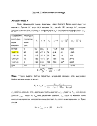 Вариацын коэффициент: Уг үзүүлэлт нь вариантуудын утгууд нь дунджаасаа