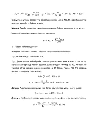 Медианыг тооцохдоо дараах томъѐог ашиглана.
