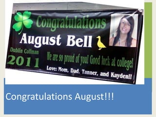 This document is a letter from a father to his daughter August on her birthday. He reminisces about watching her grow up from a newborn to a young woman. He recalls memorable moments like their bike rides together, her success in sports like softball, and their adventures traveling. While sad that his little girl has grown up, he is proud of the woman she has become and will always cherish the wonderful memories they have shared. He encourages her to continue living fully and passionately every day.