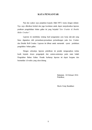 dan Double Roll Crusher. Laporan ini dibuat untuk memenuhi syarat praktikum